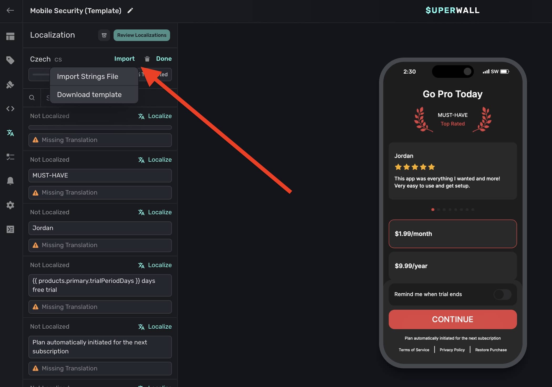 - Advanced: User external .strings files to localize your paywall. This is ideal when you are using external localization services.