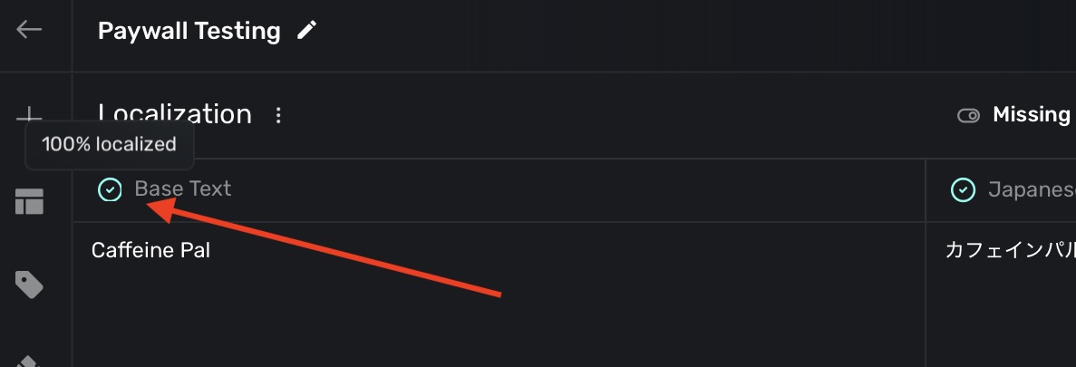If there are any existing text components on your paywall, all of them with currently unlocalized strings will populate in the sidebar (in this example, we're localizing our text for Spanish speakers):