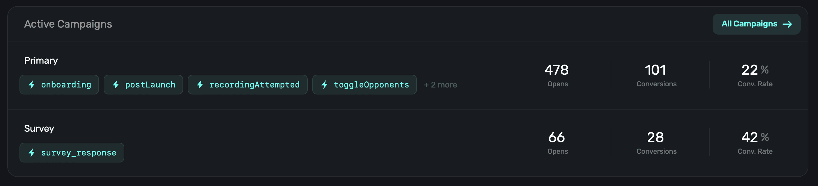 - How many opens those placements resulted in. Put differently, how many paywall presentations have occurred for the campaign.
