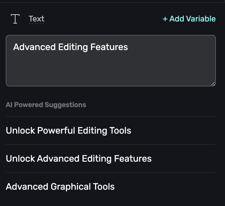 When you edit a textfield, the AI Powered Suggestions section will offer alternative suggestions for your text using OpenAI's gpt3: