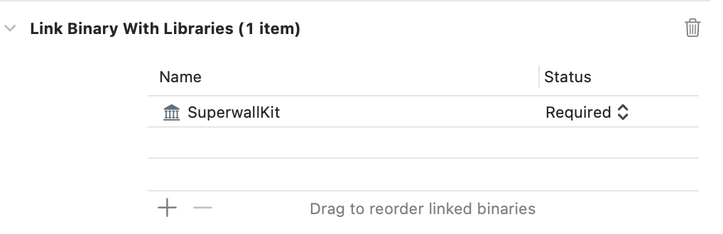 Sometimes Xcode keeps the old framework reference around by accident, so select your target in Xcode, then go to Build Phases, and ensure that your target’s Link Binary with Libraries section references SuperwallKit, and remove the reference to Paywall if it was still there.